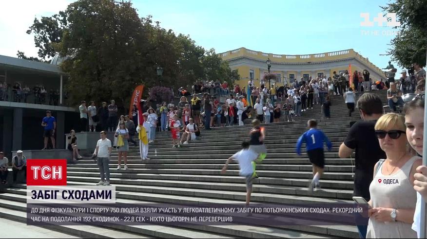 Забіг Потьомкінськими сходами відбувся цими вихідними в Одесі. Цьогоріч на змагання зібралися 750 учасників – від молодших школярів до спортсменів 50+. Легкоатлетичний забіг "Вгору Потьомкінськими" традиційно проходить в Одесі до Дня фізкультури та спорту. Змагаються учасники за віковими групами. Повністю всі сходинки знизу догори долають старші учасники. Молодші – долають лише частину сходів. Серед бігунів – і досвідчені спортсмени, і прихильники здорового способу життя.