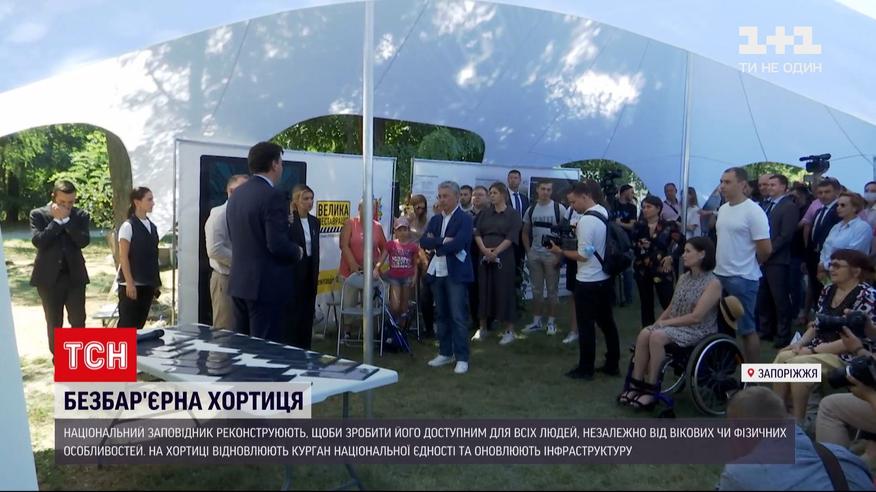 Безбар'єрна Хортиця. На інспекцію острова, внесеного до програми "Великої реставрації", дружина президента Олена Зеленська запросила людей з особливими потребами. Адже саме доступність Національного заповідника влада декларувала як пріоритет. Наразі на острові реконструюють Музей запорозького козацтва, відновлюють курган національної єдності, а також мають кардинально оновити інфраструктуру.