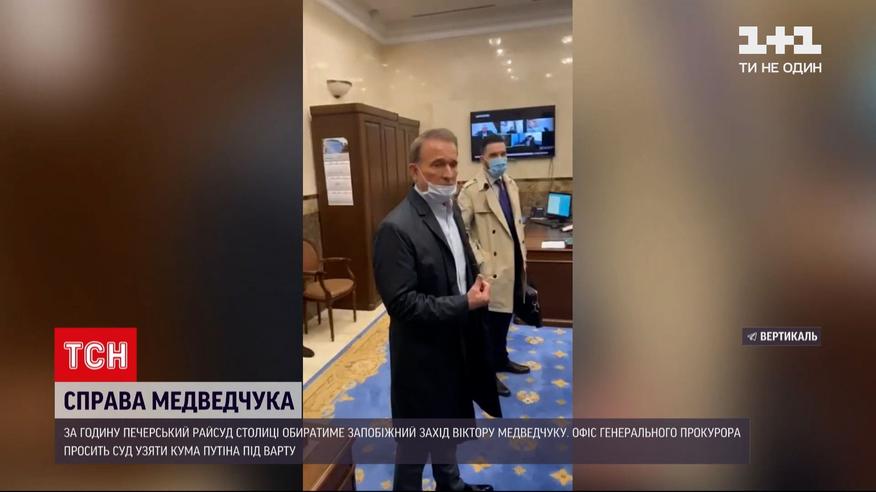 Запобіжний захід Віктору Медведчуку сьогодні обиратиме Печерський суд столиці. Представники Офісу генерального прокурора вже віднесли туди клопотання. Вони просять суд узяти нардепа від "ОПЗЖ" під варту. Напередодні кум Путіна, Віктор Медведчук, сам прийшов до Офісу генпрокурора. Там йому вручили примірник підозри.