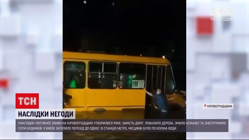 Замість доріг - ріки, повалені дерева, змитий асфальт, знеструмлені сотні будинків. Після кількатижневої спеки, пізно ввечері Кіровоградську область накрила потужна, майже тропічна злива. Негода з дощем, градом, сильним вітром вирувала не більше години, однак спричинила чимало проблем. Щонайменше на десяти вулицях обласного центру через повалені дерева і потоки води рух транспорту паралізувало. Другу добу поспіль пливе й столиця. Учора надвечір - знову пройшов сильний дощ із грозою.