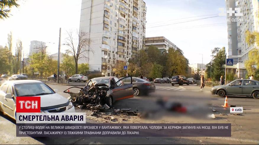 Аварія із загиблим у середмісті Києва. Зранку поблизу метро Лук'янівська зіткнулись легковик і вантажівка. Водій орендованого автомобіля на великій швидкості влетів у вантажівку, яка саме повертала у двір. Від удару кермувальник легковика загинув на місці. А його супутницю з важкими травмами шпиталізували. Обставини трагедії з’ясовують правоохоронці.