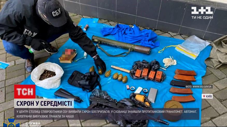 Схрон боєприпасів у середмісті Києва: співробітники Служби безпеки України поблизу столичної Набережної виявили протитанковий гранатомет, автомат, кілограми вибухівки, гранати та набої. Це все невідомі сховали у дренажній системі, яка є об'єктом критичної інфраструктури. Вилучені боєприпаси доправили на експертизу, нині силовики шукають власників схрону.