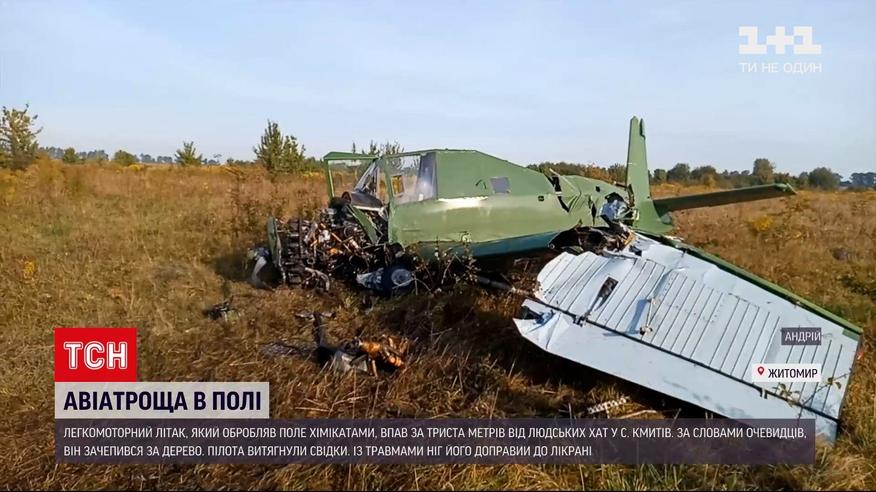 Слідчі розпочали кримінальне провадження за статтею порушення правил повітряних польотів. Легкомоторний літак, який обробляв поле хімікатами, напередодні впав у селищі Кмитів - за триста метрів від сільських хат. Очевидці кажуть, він зачепився за дерево. Люди кинулися рятувати пілота. Із травмами ніг його доправили до лікарні.