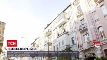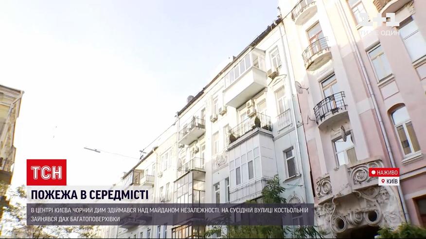 Пожежа у центрі Києва - чорний дим здіймався над Майданом Незалежності. На сусідній вулиці Костьольній зайнявся дах багатоповерхівки. На місці перебуває ТСН.