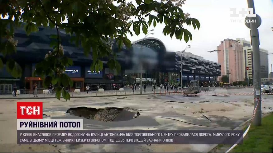 Щонайменше кілька днів знадобиться столичним комунальникам, щоб залатати прорив поблизу метро "Либідська". До того часу вулиця буде непроїзною, транспорт пускатимуть в об'їзд. Напередодні там посеред дороги утворилося провалля, ріки каламутної води залили шлях і спричинили кілометрові затори. Аварія сталася на тому ж місці, де півтора року тому вже бив гейзер з окропом.