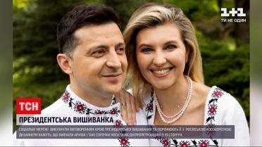 Ще перед пресконференцією родина Зеленських оприлюднила фото у дизайнерських вишитих сорочках з нагоди дня вишиванки. На сорочці першої леді - квадратний виріз та рослинний орнамент, такий самий орнамент прикрасив і сорочку Президента. А от виріз на ній, косий, викликав емоційне обговорення у користувачів соціальних мереж. Боковий виріз відразу порівняли з російською косовороткою.