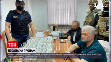 За три з половиною мільйони доларів намагалися продати посаду голови Кіровоградської облдержадміністрації. Організовану групу викрила Служба безпеки України. Під час досудового розслідування встановили: ця оборудка з посадами за гроші не перша. Організувала її мешканка тимчасово окупованої території в Луганській області. Напередодні правоохоронці затримали двох учасників групи. Вони обіцяли повпливати на посадових осіб Кабінету міністрів і забезпечити посадою.