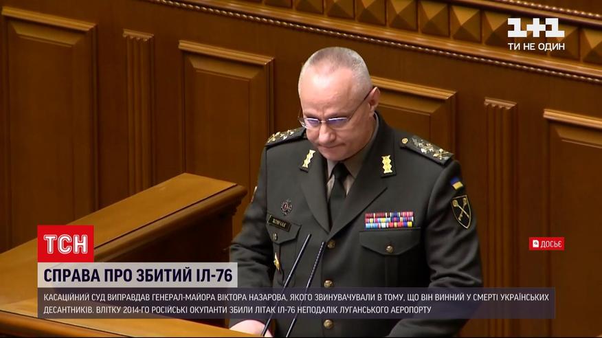 Генерала-майора Віктора Назарова виправдано. Касаційний суд скасував рішення суду та закрив кримінальну справу. Колишнього керівника штабу АТО судили у справі про збитий ІЛ-76. Влітку 2014 року бойовики збили літак, що доправляв українських десантників до луганського аеропорту. Загинуло 49 осіб. Тоді слідчі довели, що Назаров мав достатньо даних про те, що ворог готує засідку, проте відправив військових у політ. Назаров, суд, ІЛ-76