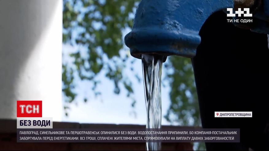 Одразу три міста у Дніпропетровській області - без води. Це загалом 200 тисяч жителів Першотравенська, Синельникова й Павлограда. Все - через борги минулих років перед енергетиками постачальника води - держпідприємства "Канал Дніпро-Західний Донбас". Більше – у сюжеті.