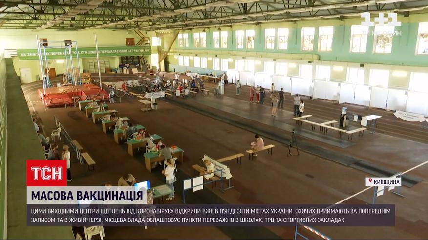Вакцинація набирає обертів. У всій країні відкривають пункти вихідного дня для щеплень. Уже 15 обласних центрів облаштували такі місця. І дедалі більше малих міст заохочують жителів вакцинуватися. Загалом у ці вихідні щепитися можна в 50 населених пунктах. Колють китайську вакцину CoronaVac. Приймають і за попереднім записом. І тих, хто просто прийшов до пункту. Пріоритет - літнім людям. Чи охоче йдуть щеплюватися, коли така масова кампанія триває вже треті вихідні - дізнавалися наші кореспонденти.