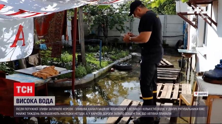 Зливи перетворили на річки дороги одразу в кількох містах країни. Після дощу херсонські соцмережі рясніють відео з різних районів, де вода переливалась через бордюри на дорогах, а люди переходили вулицю по коліна у воді. Усе через потужну зливу та проблему зливової каналізації, яка не впоралась з великою кількістю води. А у Харкові злива наробила лиха сьогодні по обіді, за якихось пів години. Залило не тільки вулиці, а і під'їзди. У двох районах вулицями пересуватись пішки стало неможливо.