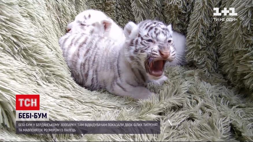 Весняний бебі-бум у Бердянському зоопарку. Два десятки малюків з`явилися на світ - зокрема, білі тигренята та мавпочки завбільшки з палець, яких удалося навіть потримати на руці нашому кореспонденту.