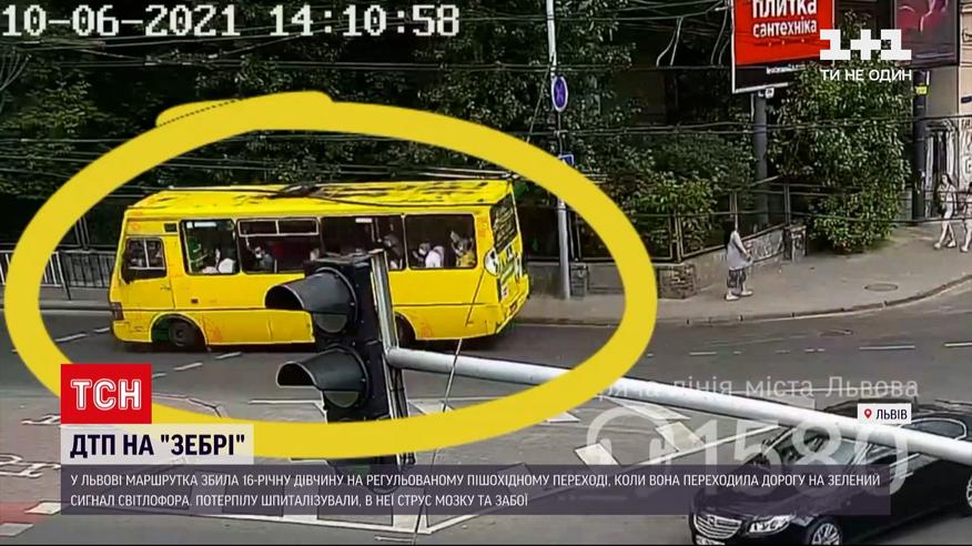 У Львові маршрутка збила 16-річну дівчину. ДТП зафіксували камери спостереження. Все сталося у середмісті на регульованому пішохідному переході, лише за кілька метрів від автобусної зупинки. З десяток людей чекали сигнал світлофора, щоб перейти дорогу. Щойно загорівся зелений - дівчина, що стояла попереду усіх, ступила на зебру. Тоді її і збив мікроавтобус. Потерпілу ушпиталили. У неї струс мозку та забої. Інші пішоходи не постраждали.