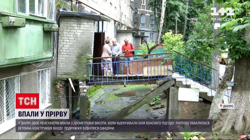 Новини України: у Дніпрі двоє пенсіонерів впали з двометрової висоти біля власного під`їзду