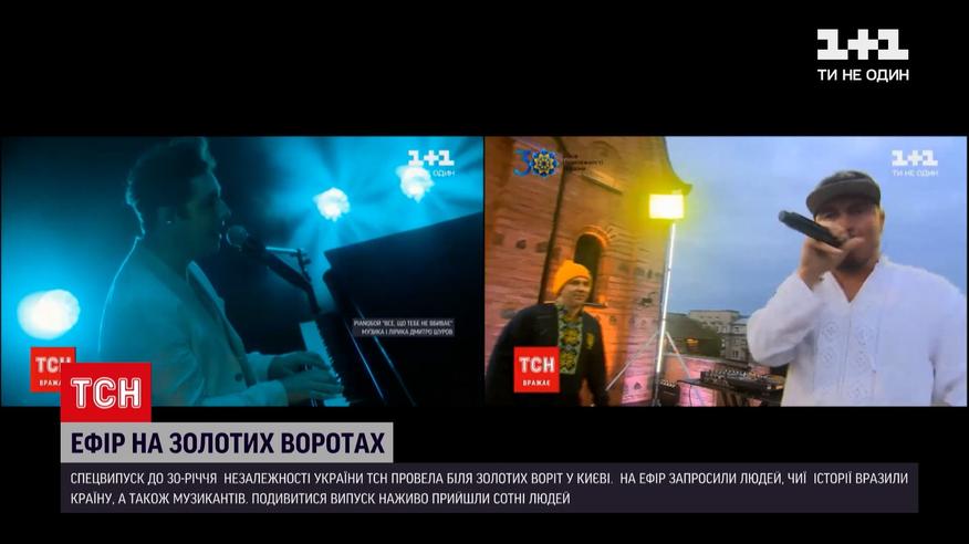 Грандіозний спецвипуск до 30-річчя Незалежності України. ТСН спробувала відтворити шлях нашої держави за останні три десятки років. У самому серці столиці, на Золотих Воротах глядачі побачили - історії українців, що вразили усю країну. Це було і ток-шоу, і концерт, в якому взяли участь ТНМК, Джамала, П'єноубой, Тіна Кароль. Подивитися ефір наживо прийшли сотні людей.