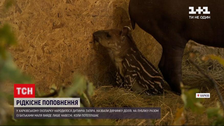Рідкісне поповнення у харківському екопарку. Там у родині тапірів народилось дитинча. Дівчинка з'явилась на світ три тижні тому, та лише зараз її показали журналістам. А от на публіку родина з первістком почне виходити лише навесні, як потеплішає.
