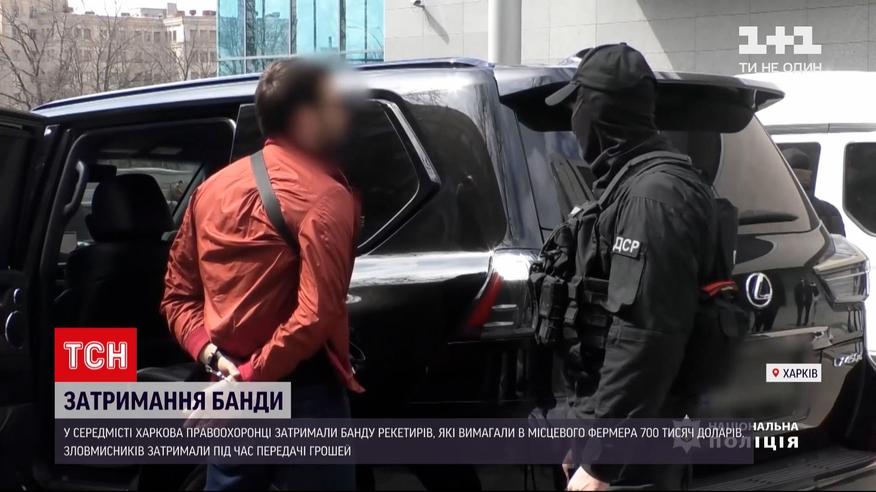 Спецоперація у середмісті Харкова правоохоронці на очах перехожих затримали банду рекетирів. У місцевого фермера група чоловіків вимагала, аби той переписав на них свою фірму. Бізнесмена побили та пригрозили його родині розправою, якщо не виконає всі вимоги. І щоб довести серйозність своїх намірів, за пару днів злочинці розтрощили автівку підприємця, а на капоті лишили траурні вінки. Згодом, замість прав на компанію, бандити захотіли 700 тисяч доларів. Підприємець пішов до поліції. Спецоперацію влаштували у готелі, де фермер мав передав бандитам гроші.