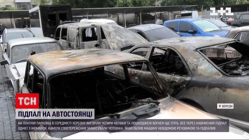 4 автівки згоріли вщент і 5 пошкоджені вогнем. Херсонські правоохоронці розслідують зухвалий підпал автомобілів просто на платній стоянці у середмісті. Рятувальників викликали уночі. Вони майже годину долали пожежу і відбивали вогонь від решти машин. 20 автомобілів на стоянці вціліли. Правоохоронці відкрили провадження через пошкодження майна і вилучили відео з камер спостереження. Там побачили, як невідомий у масці й капюшоні облив невідомою речовиною автомобіль "Мерседес", підпалив і втік.