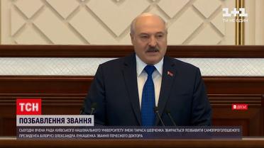 Без звання почесного доктора. Сьогодні Київський національний університет імені Тараса Шевченка планує позбавити цього статусу Олександра Лукашенка. На Вченій раді спершу затвердять процедуру, а потім проголосують за відповідне рішення. Виш позбавлятиме звання почесного доктора вперше за історію свого існування. Досі навіть не існувало такої процедури. Її розробили три комісії ради. Підставами для такого рішення є порушення прав людини і неповага до держави Україна.