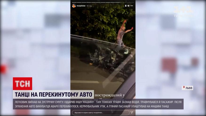 Новини України: у Львові нетверезий чоловік танцював на авто, яке перекинулося внаслідок ДТП