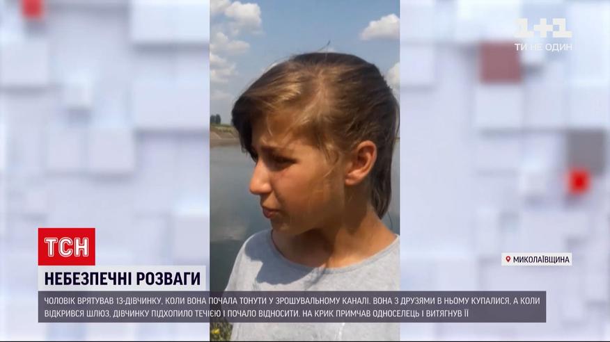 Дитину з води врятував односелець. У Миколаївській області діти купалися у зрошувальному каналі. Коли відкрився шлюз, всі кинулися на берег. А 13-річну дівчинку почало відносити течією прямо на шлюзи. Діти спершу їй кидали рушники, аби витягнути. Але марно. Дитячий крик почув оглядач каналу і стрибнув у воду.