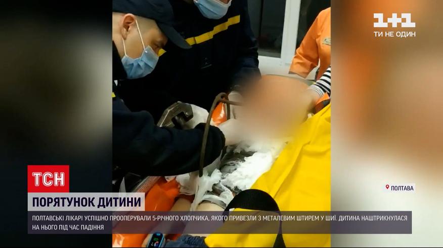 Одразу 10 лікарів оперували п'ятирічного хлопчика у Полтаві. Пізно увечері його привезли із села з металевим штирем у шиї. Граючись на подвір'ї малюк упав на проіржавілий предмет, схожий на каркас стільця, з якого стирчали три металеві прути. Один із них простромив дитину наскрізь. Кажуть була реальна загроза для життя, але дитині пощастило, бо штир не зачепив артерії і стравохід.