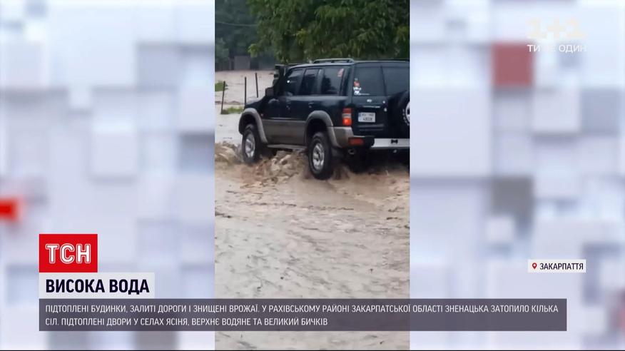 Підтоплені будинки, розмиті дороги і знищені врожаї. У Рахівському районі Закарпатської області зненацька затопило кілька сіл. Найбільше води прийшло у Великий Бичків. Рясна злива там почалася напередодні пообіді і не вщухала годину. А після того дощова вода з гір хлинула на городи та обійстя людей і перетворила вулиці села на стрімкі потоки. Відео негоди люди опублікували у соцмережах. Кажуть, що худобу встигли врятувати, а от меблі та побутову техніку - вже ні.