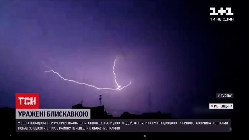Блискавка вразила 14-річного хлопця, 31-річного чоловіка та вбила коня. Сталося це в селі Сновидовичі Рівненської області. Двоє чоловіків і хлопчик  йшли біля підводи полем поруч лісу, як раптом здійснялася гроза і ніби нізвідки блиснуло. За секунду власник коня побачив, що той упав замертво, а поруч  лежали його односельці. Докладніше – у сюжеті.