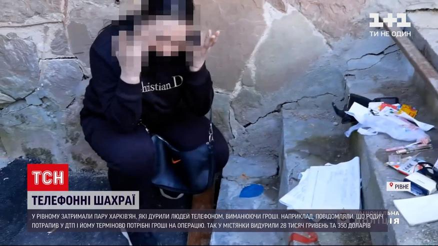Ваша дочка - у лікарні. Телефонних шахраїв затримали оперативники у Рівному. Пара харків'ян дурила людей, виманюючи гроші. Так напередодні ошукали 72-річну рівнянку. Вона повідомила в поліцію. Оперативникам вдалося вийти на слід зловмисників та невдовзі затримати. Аферистами виявилися 35-річна жінка та її на рік старший приятель. Їх перевіряють на причетність до подібних злочинів. Дуету загрожує до 3 років за гратами.