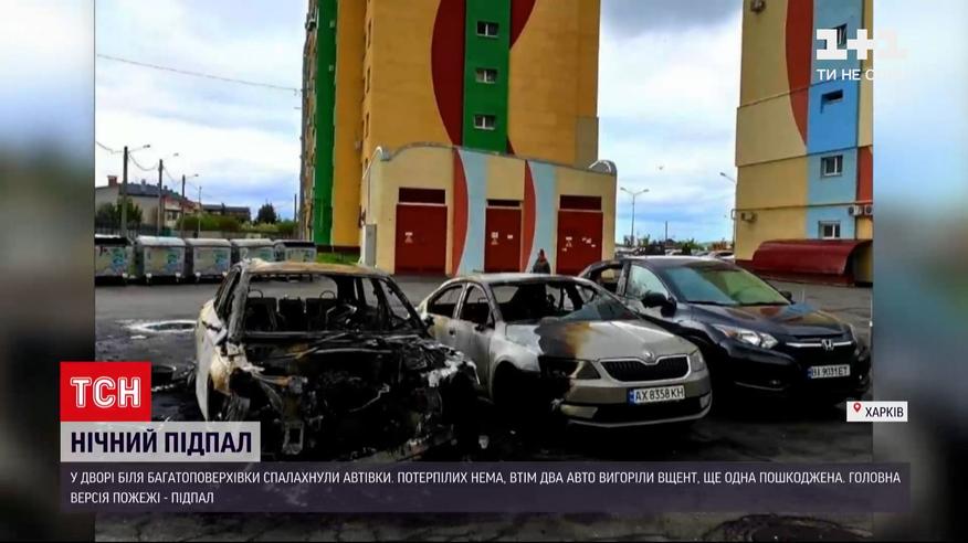 Пожежа у спальному районі Харкова. На стоянці біля багатоповерхівки зайнялися автівки. Рятувальників викликали перелякані пожильці. Гасити займання приїхали одразу дві пожежні машини. На той час вогонь повністю охопив два легковики і вже перекидався на сусідній позашляховик. До під'їздів житлового будинку полум'я не дісталось, його загасили за годину.