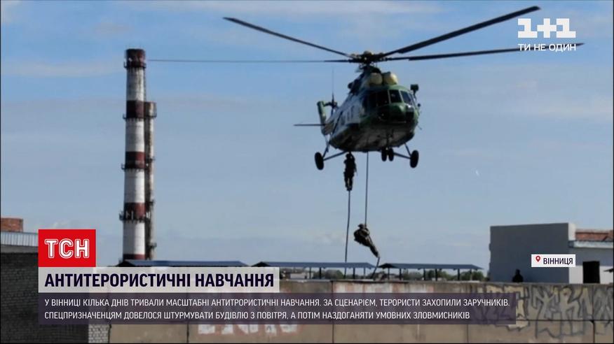 Перекриті дороги, бронемашини, спецпризначенці й гелікоптери. У Вінниці кілька днів тривали масштабні антитерористичні навчання. За сценарієм - терористи захопили заручників. Відпрацьовували звільнення в умовах, максимально наближених до реальних.