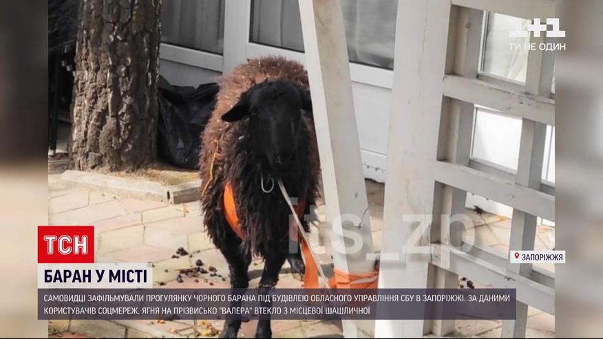Прогулянка ягняти у великому місті. Чорний баранчик розгулював під обласним управлінням СБУ в Запоріжжі. Парнокопитного зафільмували самовидці. Його помітили на паркуванні для службових авто просто біля головного входу. Там тварина бігала поміж автівок оперативників. За деякий час черговий вигнав непроханого гостя.