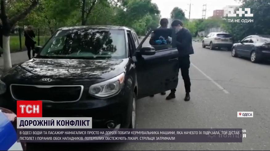 В Одесі дорожній конфлікт переріс у стрілянину. Попередньо - одна з автівок підрізала іншу. Її наздогнали батько і син . І намагалися побити водія просто у салоні - відчинили двері і завдавали ударів. За якусь мить кермувальник дістав пістолет. І поранив обох нападників.