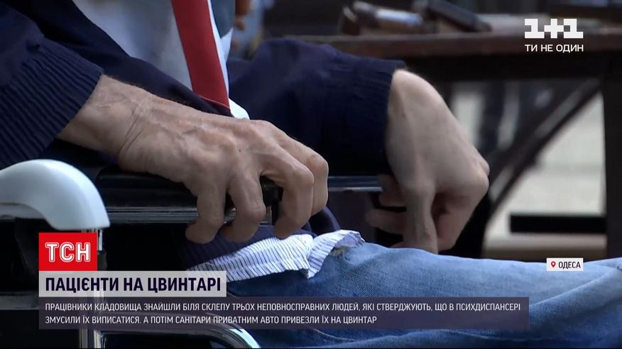 Трьох пацієнтів одеського психдиспансеру знайшли на цвинтарі. Усі вони - недієздатні, крім того - один із чоловіків паралізований, в іншого ампутовані ступні. Їх знайшли працівники кладовища біля склепу без їжі та води. Люди розповіли, що їх привезли сюди санітари психіатричної лікарні. В моторошній історії розбиралася ТСН.