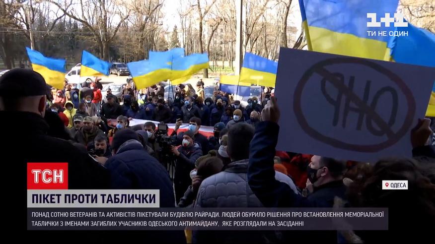 "Стоп реванш". Під таким гаслом в Одесі понад сотня ветеранів та активістів пікетували будівлю райради. Їх обурило рішення депутатів щодо вшанування загиблих 2 травня 2014 року. Під час сесії обранець від партії Шарія запропонував встановити на Куликовому полі меморіальну дошку з іменами загиблих учасників одеського антимайдану. Присутні, разом з головою райради, одноголосно проголосували за цю пропозицію. Після цього обурені одесити і прийшли до депутатів з прапорами та фаєрами.