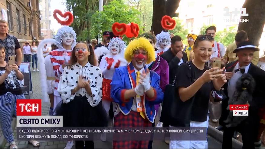 Чотириденне свято сміху стартувало в Одесі. Там відкрився ювілейний, десятий міжнародний фестиваль клоунів і мімів "Комедіада". Зазвичай клоуни з усього світу приїздили в Одесу під час "Гуморини", тоді традиційно проводили і "Комедіаду", однак через жорсткий карантин навесні зробити так не вдалося. Скільки клоунів приїхало до курортної Одеси – у прямому включенні.