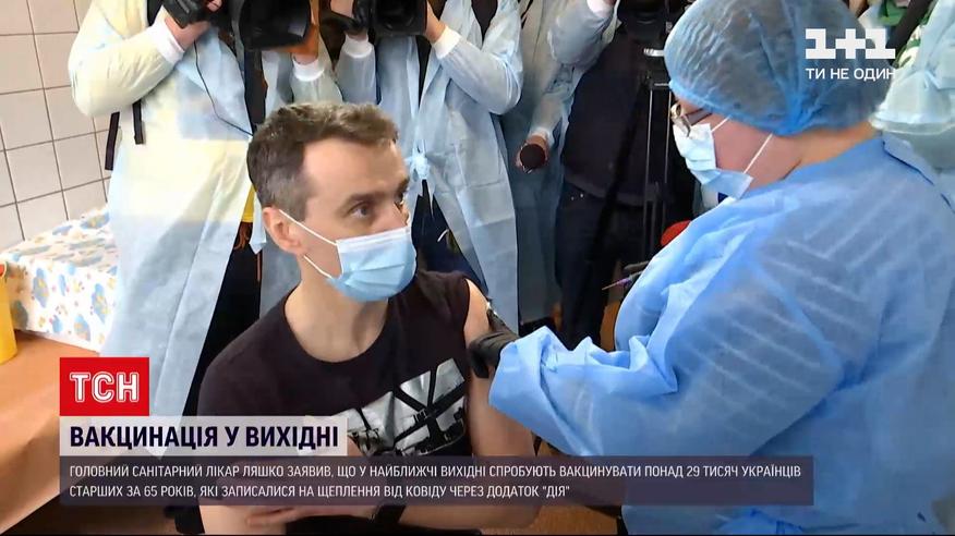 Вакцинуватимуть не всіх охочих, а передусім людей із пріоритетних груп. Головний санітарний лікар Ляшко фактично спростував заяву прем'єр-міністра Шмигаля проте, що вже найближчими вихідними вакцинувати почнуть усіх охочих, хто зареєструвася через додаток "Дія". Віктор Ляшко запевняє, що для пів мільйона українців, які записалися у додатку - вакцини наразі немає, тому для початку серед зареєстрованих обиратимуть людей з пріоритетних груп, старших за 65 років.