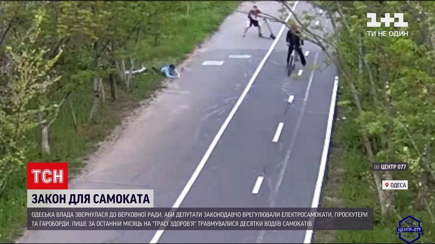 Десятки травмованих водіїв самокатів лише за місяць. Все - на одеській трасі здоров'я, що уздовж Чорного моря. Травми потерпілих - від забоїв до переламів та струсів мозку. У місцевій владі кажуть - заборонити проїзд елекросамокатів не можують - не мають повноважень. Тож, звернулися до Верховної Ради. Аби депутати законодавчо врегулювали користування самокатами, гіроскутерами та гіробордами і внесли зміни до Правил дорожнього руху. Поки ж намагаються виховувати самокатників і просять їх хоча б не ганяти надто швидко.