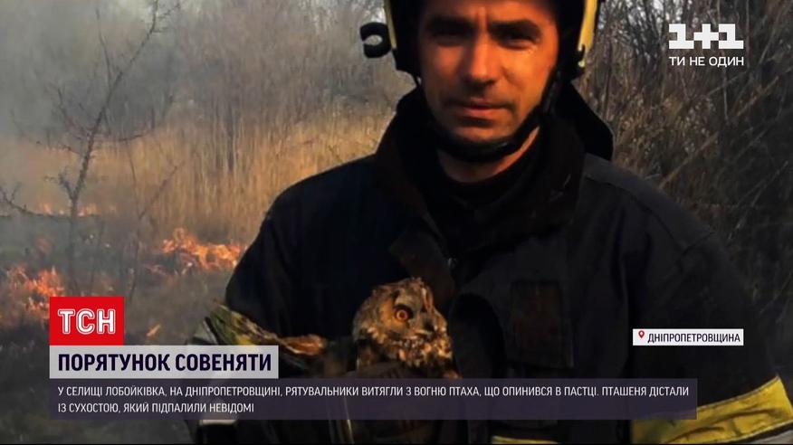 Новини України: вогнеборці врятували совеня із запаленого сухостою