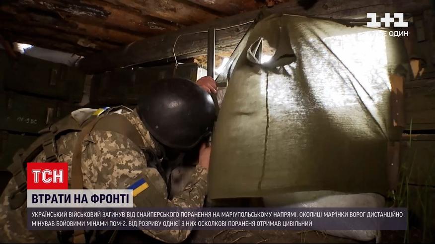 Близько півночі ворожий снайпер поцілив нашого бійця. За даними ТСН, сталося це на Маріупольському напрямку. А надвечір околиці Мар'їнки російські найманці дистанційно мінували бойовими мінами ПОМ-2 - від розриву однієї з них осколкові поранення зазнав місцевий житель.