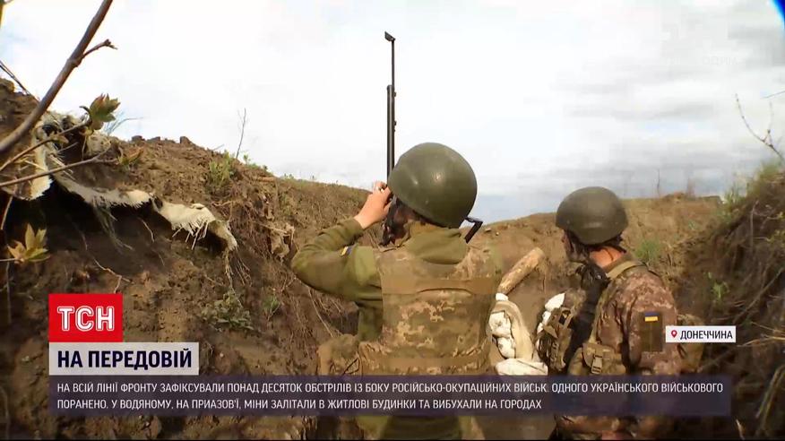 Міни, кулі, гранати, снаряди. Понад десяток обстрілів за добу. Один воїн отримав поранення. Його евакуювали. Гаряче було від Луганської області до Приазов'я. Так у Водяному міни окупантів залітали у житлові будинки та вибухали в огородах. Військові нарахували пів десятка обстрілів. Стріляє ворог серед білого дня.