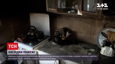 Погорільці - не з власної вини. Мешканці столичної багатоповерхівки вже другий місяці домагаються компенсації за зруйноване. Займання сталося одній із квартир на горішніх поверхах. Від неї - до щенту вигоріли ще кілька квартир. І десятко - затопило водою під час гасіння. Але компенсувати збитки нікому.