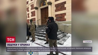Контррозвідувальні заходи відбулися у Львові - в єпархії Української православної церкви та Свято-Троїцькому храмі. Та в трьох церквах області, розташованих у різних районах. У результаті обшуків, розповіли слідчі, виявили антиукраїнську літературу, а також російські видання, зокрема Біблію з фотографією російського патріарха Кіріла. Коментарі правоохоронців - у сюжеті.