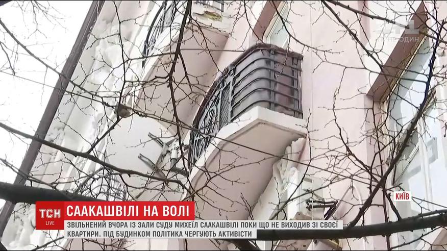 Після того, як після суду Саакашвілі зайшов у будинок, звідти більше не виходив. Хіба що зранку до нього заходили його Давід Сакварилідзе, а згодом і адвокат. Біля будинку наразі тихо і спокійно, лише чергують двоє активістів.