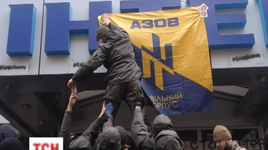 Офіс телеканалу "Інтер" заблокували бійці полку спецпризначення "Азов"