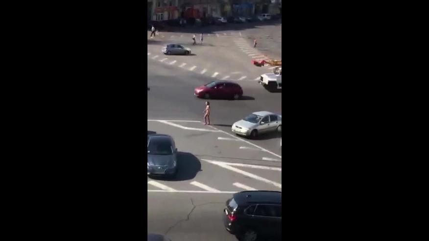 Оголена жінка розгулює вулицями Києва
