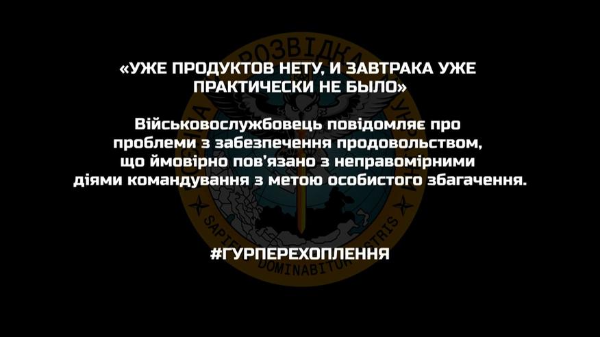 ГУР оприлюднило перехоплення, в якому російський військовий розповідає про проблему з харчуванням. Так, сніданку у нього вже майже не було, з обідом також нічого не зрозуміло. Мовляв, "все дуже дивно".