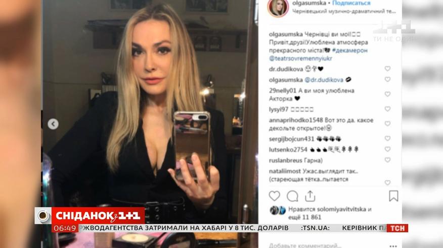 Ольга Сумська виклала в інтернет пікантні фото. На них народна артистка України у чорній обтислій сукні та з глибоким декольте. Світлини, зроблені в гримерці Чернівецького театру. Фото Сумської стрімко набрали понад 11 000 уподобань та безліч коментарів.