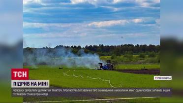 Один чоловік загинув, ще одного рятують медики. На Рівненщині біля білоруського кордону на міні підірвався трактор. 54-річний чоловік обробляв свою ділянку зі знайомим трактористом. Чоловіки проігнорували попереджувальну табличку про замінування і виїхали за безпечну межу. Тоді і прогримів вибух. Власник ділянки загинув на місці, тракториста з вогню дістали військові та поліцейський офіцер громади, який проїздив неподалік. Потерпілий у важкому стані у реанімації.