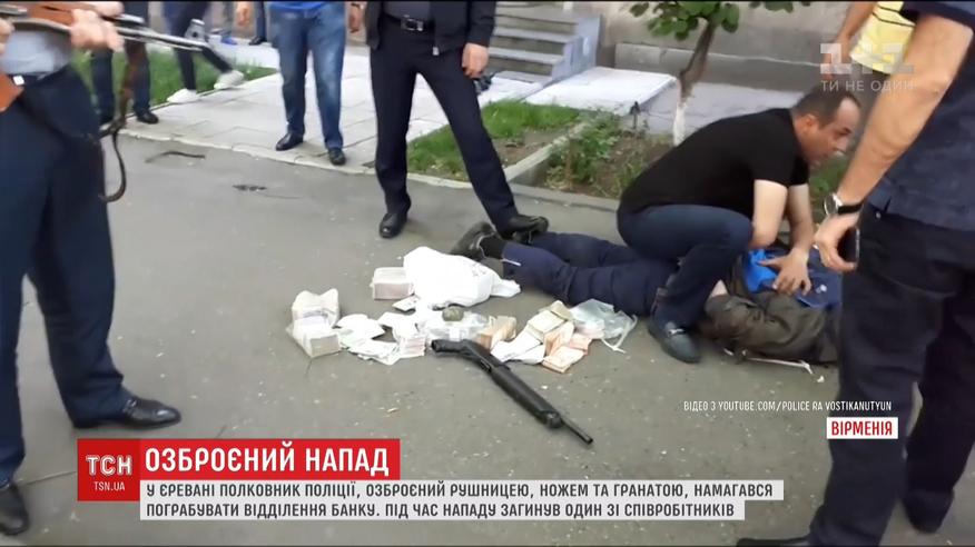 Напад на міжнародний банк у Єревані. Чоловік, озброєний рушницею, ножем та гранатою увірвався у тамтешнє відділення установи. З награбованим він збирався втекти. Коли грабіжника намагалися зупинити, він поранив двох співробітників банку. Один з них загинув. На вулиці чоловіка встигли схопити поліцейські.